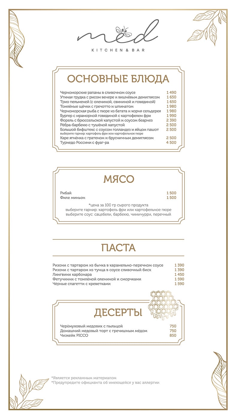 Ресторан МЁД в Красной Поляне — место, где одинаково уместны и встречи друзей, и деловые обеды, и романтические свидания, и семейные праздники. Ресторан расположен в горах Красной Поляны на улице Пчеловодов, где с 1939 года располагается Краснополянский пчелопитомник–крупнейший в мире пчелоразведенческое предприятие. Питомник успешно продолжает накопленный десятилетиями опыт своих предшественников пчеловодов и ученых. Пасеки хозяйства насчитывающие свыше 8 тыс. пчелиных семей, которые размещены по долинам рек, горным ущельям в непосредственной близости к отелю HILLS POLYANA Hotel & SPA и ресторану МЁД kitchen& bar.